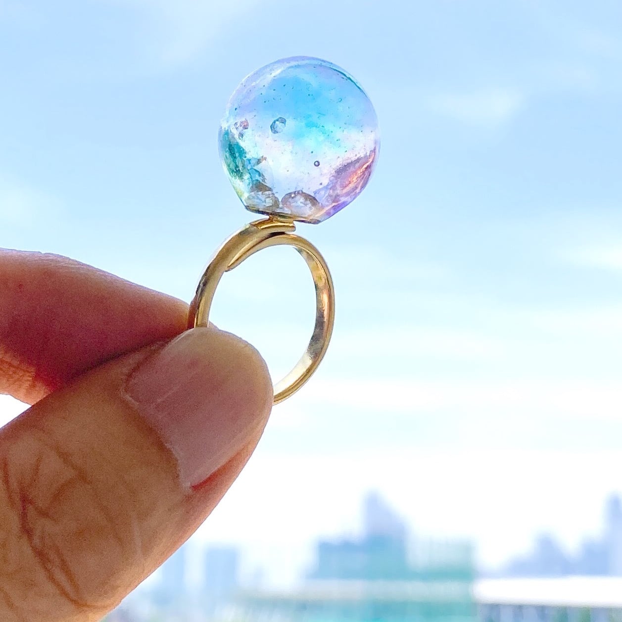 シャボン玉リング♡シャカシャカ動くストーン入り【レジンドーム】